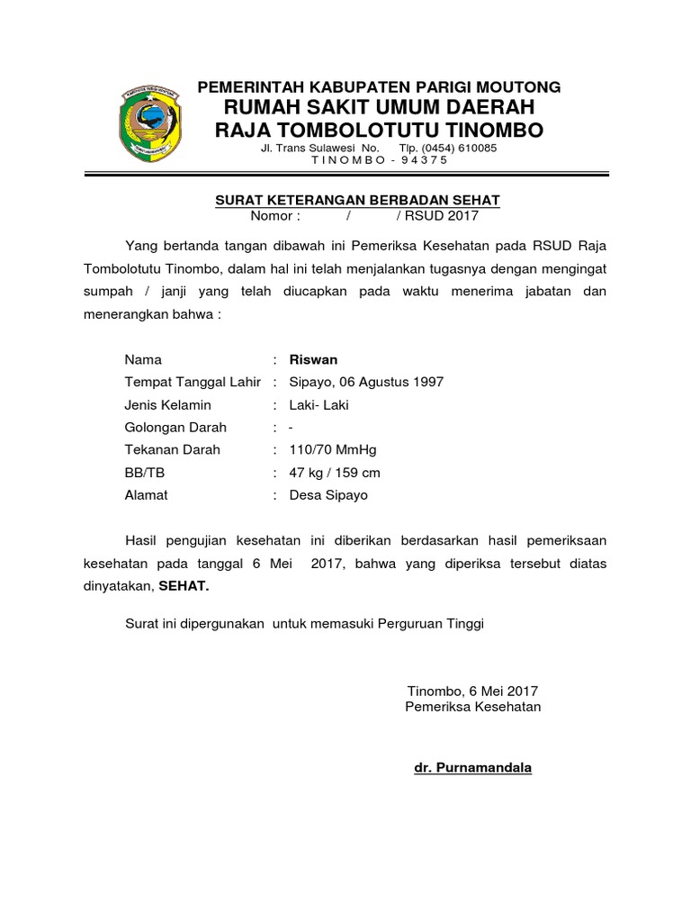 Contoh surat keterangan berbadan sehat. Pada umumnya surat ini bisa menjadi bukti bahwa murid tersebut sesuai dan pantas untuk mendapatkan. Yang bersangkutan memang benar adalah siswa sma islam fatahillah nusantara mojokerto. Berikut disampaikan surat edaran terkait permohonan rekomendasi dan ijin/dispensasi seleksi cpns. Program ini merupakan prokram baru dari bidang kesehatanfull description.
